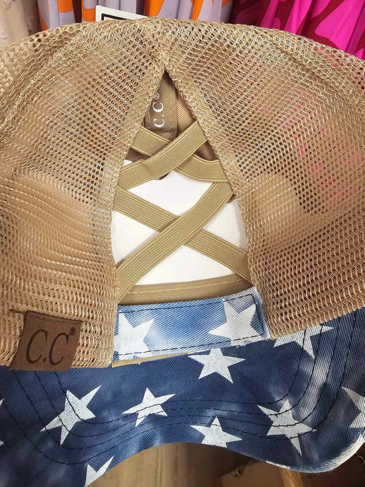 Tie Dye Star Print Ball Cap with Flag Patch