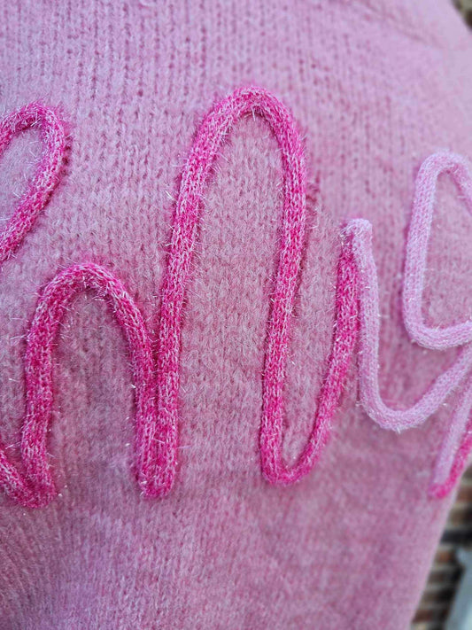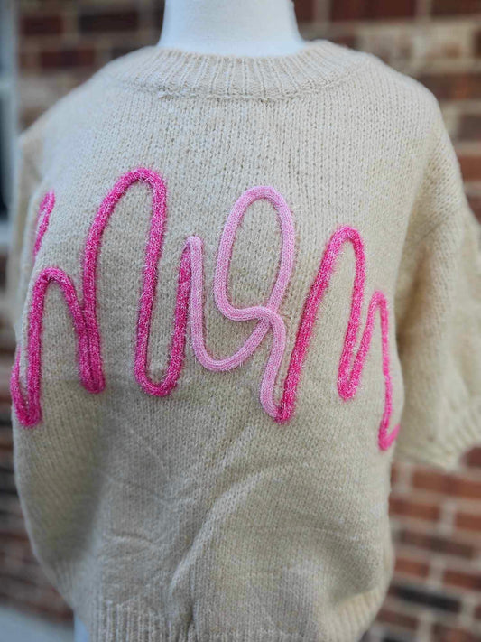 MOM Metallic Tinsel Short Puff Sleeve Top - PINK