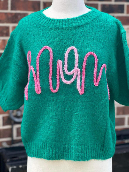 MOM Metallic Tinsel Short Puff Sleeve Top - JADE