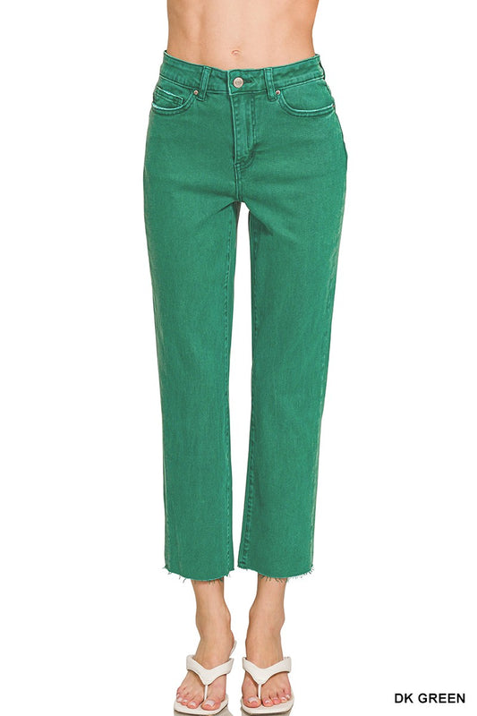 Acid Washed High Waist Frayed Hem Bootcut Pants