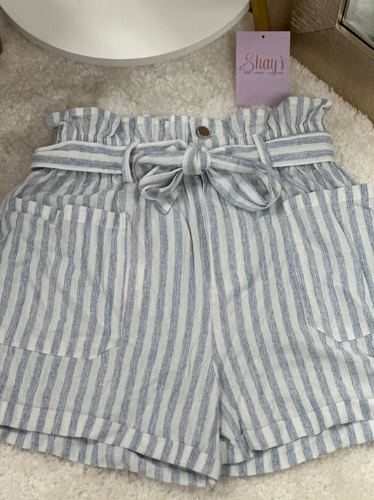 Striped Cotton Elastic Shorts - Blue