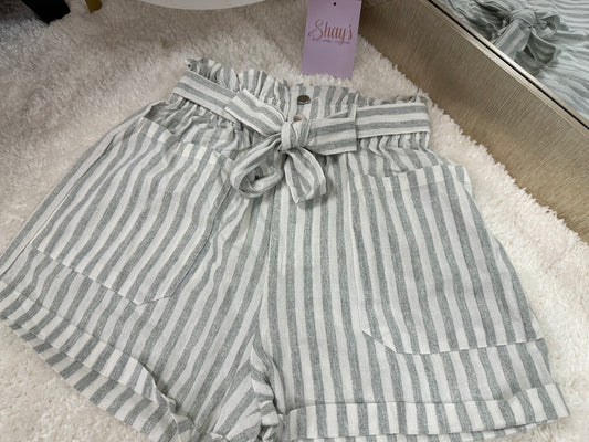 Terry- White and Green striped shorts