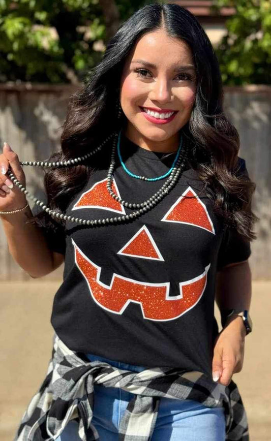 Sold outGlitter Pumpkin Face T-Shirt