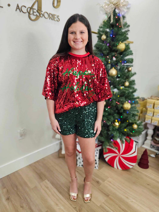 Sequin Christmas Light Shorts