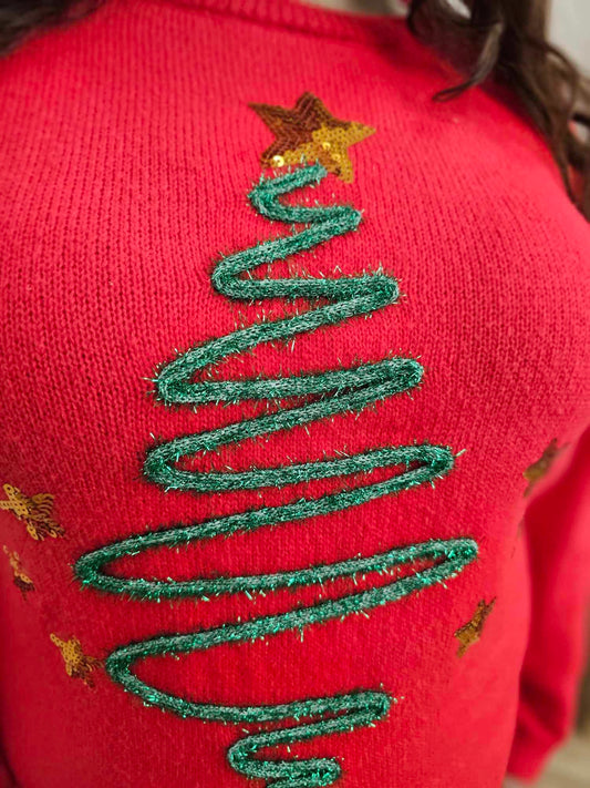 SEQUIN STAR TINSEL CHRISTMAS SWEATER