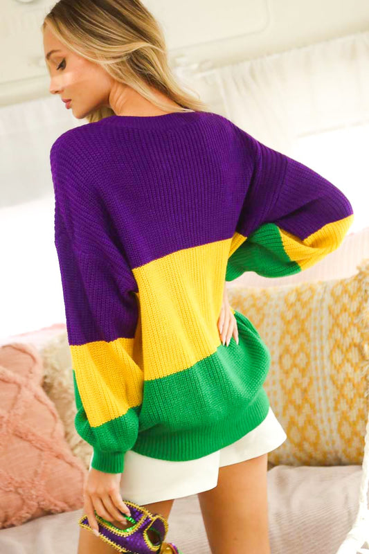 CONTRAST DETAIL MARDIGRAS SWEATER TOP- BLACK