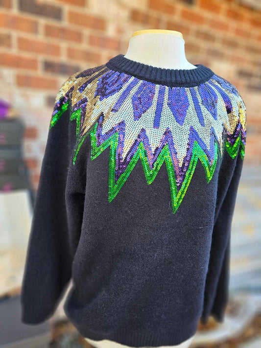 Mardi Gras Sequin Detail Sweater Top- Long Sleeve