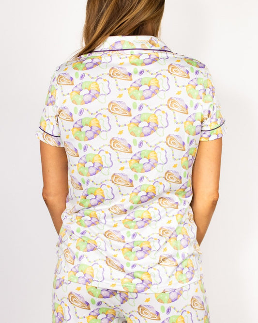 The Royal Standard- King Cake Love Short Sleeve Button Up Sleep Shirt