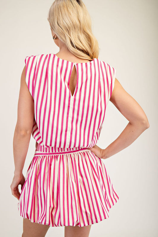Skorty Top-Round Neck Shoulder Padded Waist Elastic Top