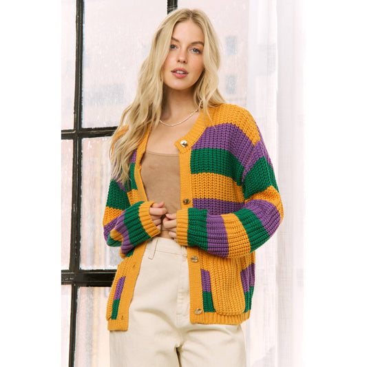 Krewe of Chaos- MARDI GRAS STRIPED CARDIGAN