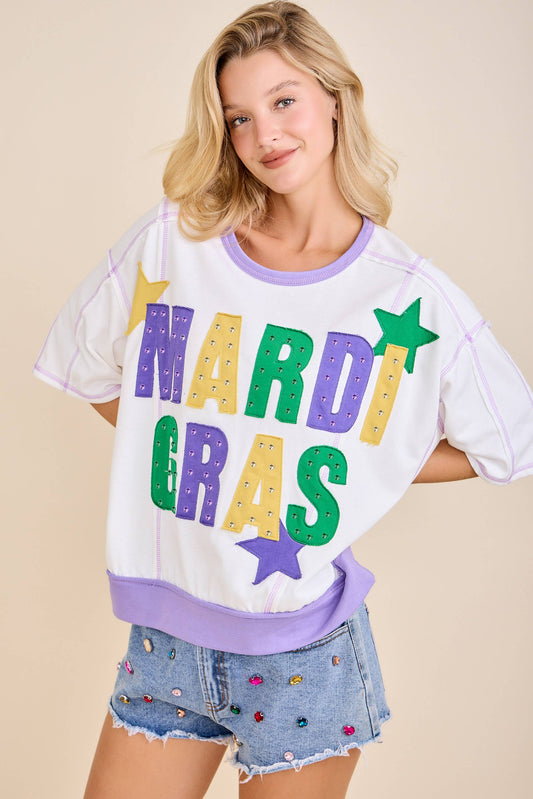 In the words- Mardi Gras Color Block Rhinestone Sweatshirt
