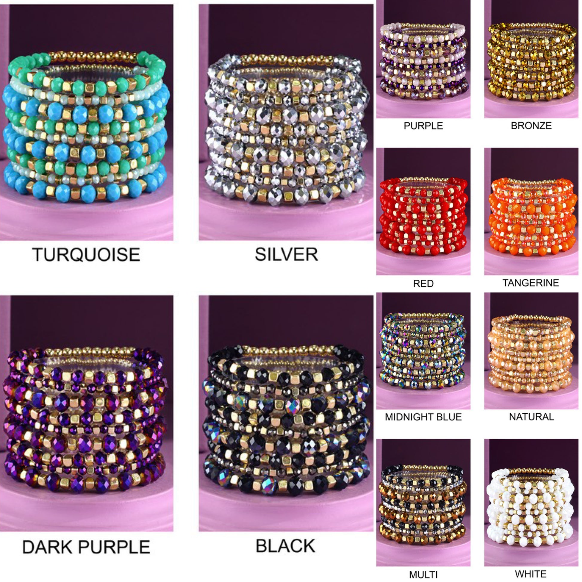 9 Piece Colorful Beaded Stretchy Bracelet Stack