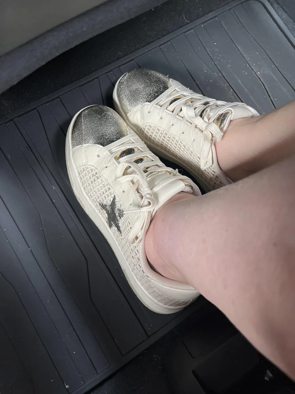 Discover Sneakers - elevate your summer outfit with these wearable gold shimmer sneakers. Perfect for adding a touch of glam to your work wardrobe or any casual look. Designed for both style and function, these sneakers will make a statement on and off the court.