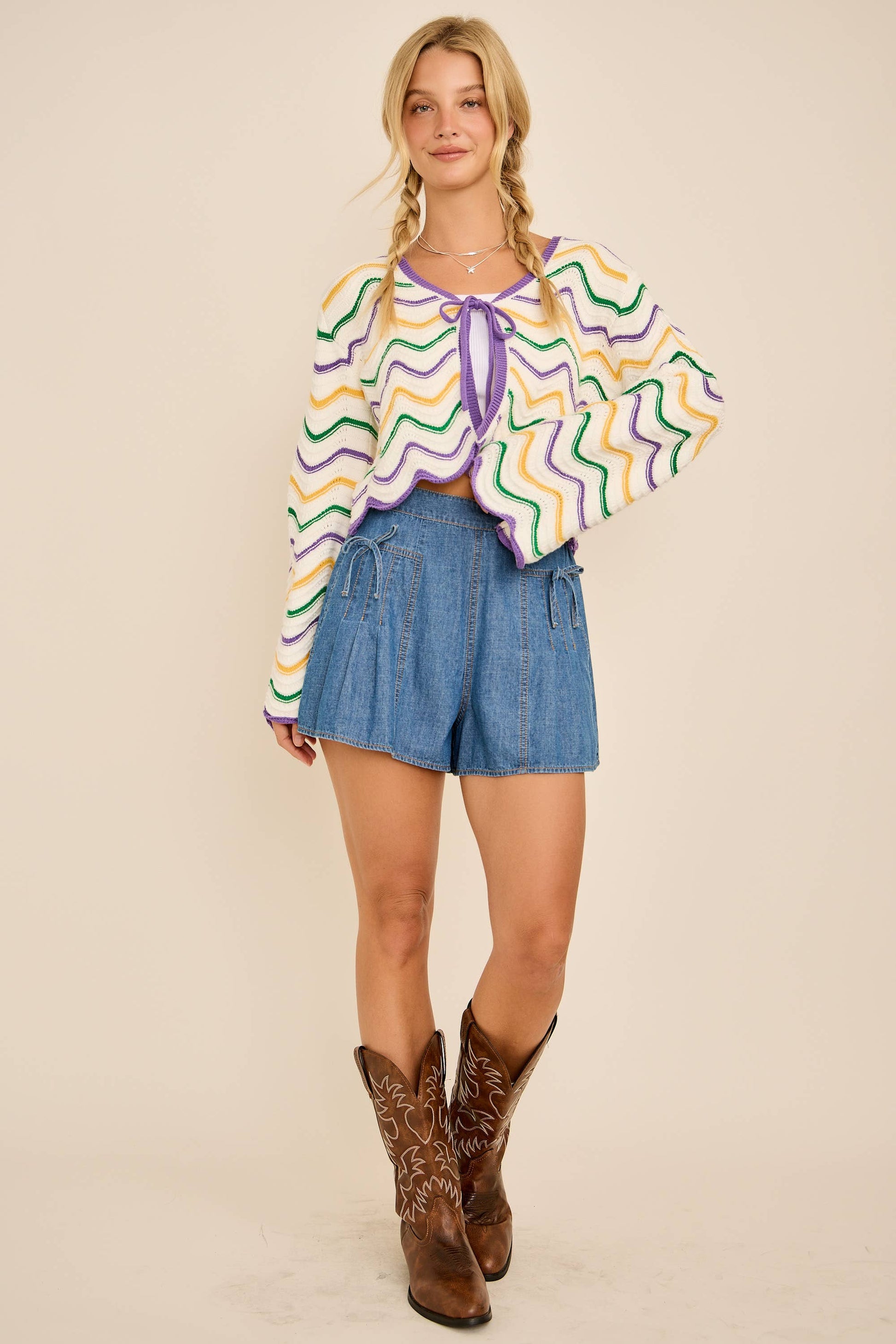 IRIS- Mardi Gras Wave Stripe Tie Cardigan – Festive Knit