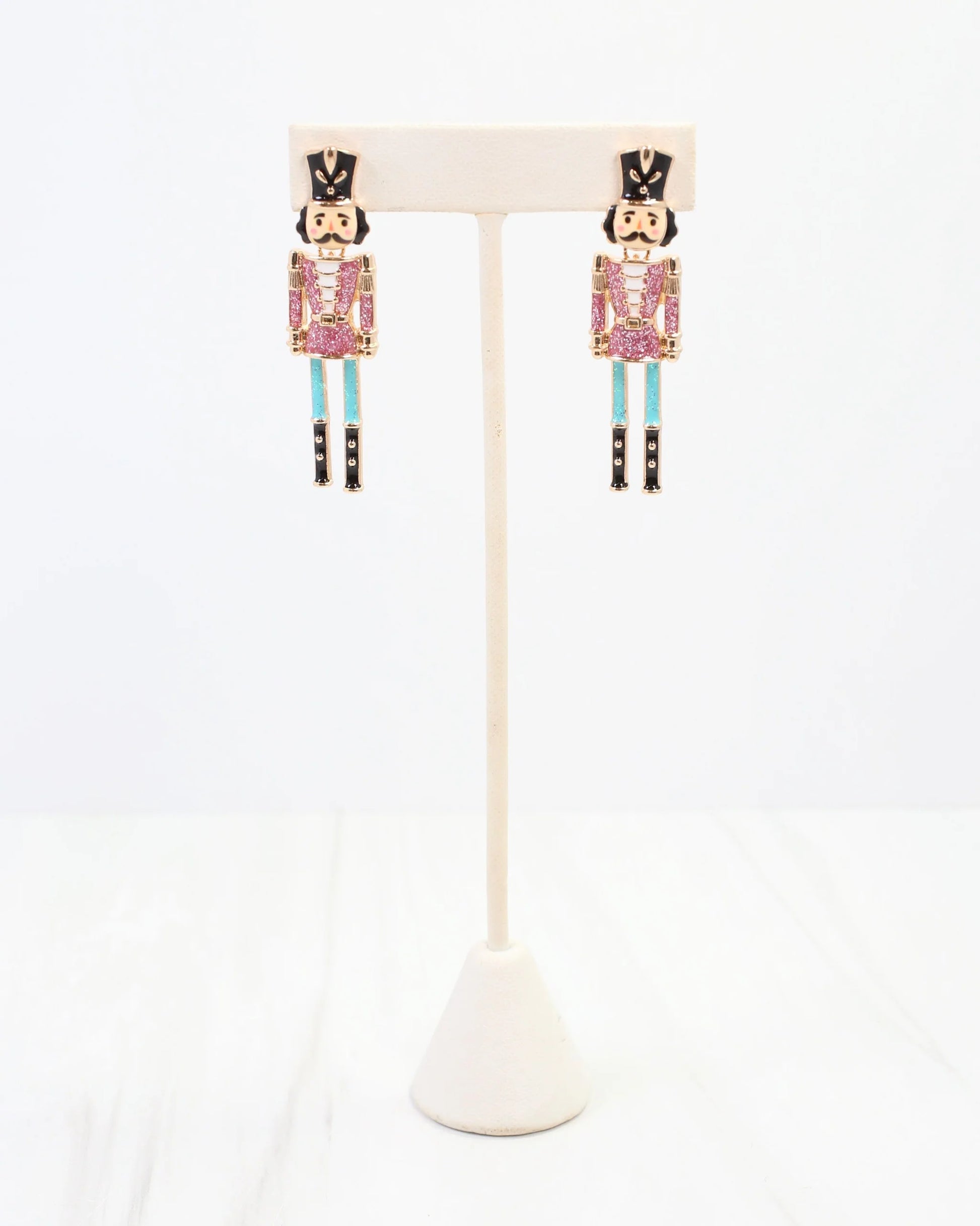 Make a bold statement with the Naughty or Nice Nutcracker Earring in pink. These enamel dangly earrings capture the regal charm of a classic nutcracker with a vibrant, fashionable twist. Perfect for adding a playful yet sophisticated touch to your holiday look.