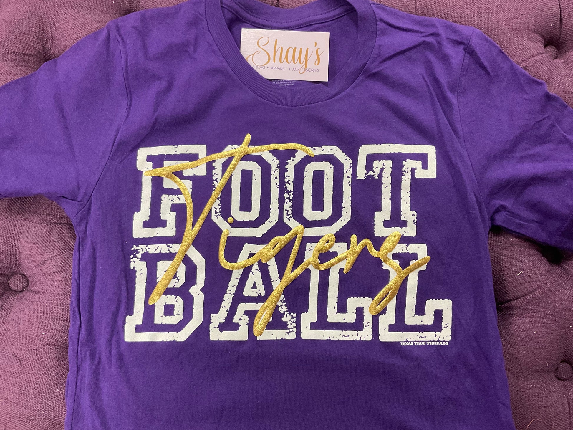 This Tigers Football custom puff tee combines the softness of Bella canvas fabric with a striking gold metallic puff print on a vibrant purple background. Designed for comfort and durability, it offers a premium feel while showcasing team spirit with a bold, textured design. Perfect for fans seeking style and quality in one.